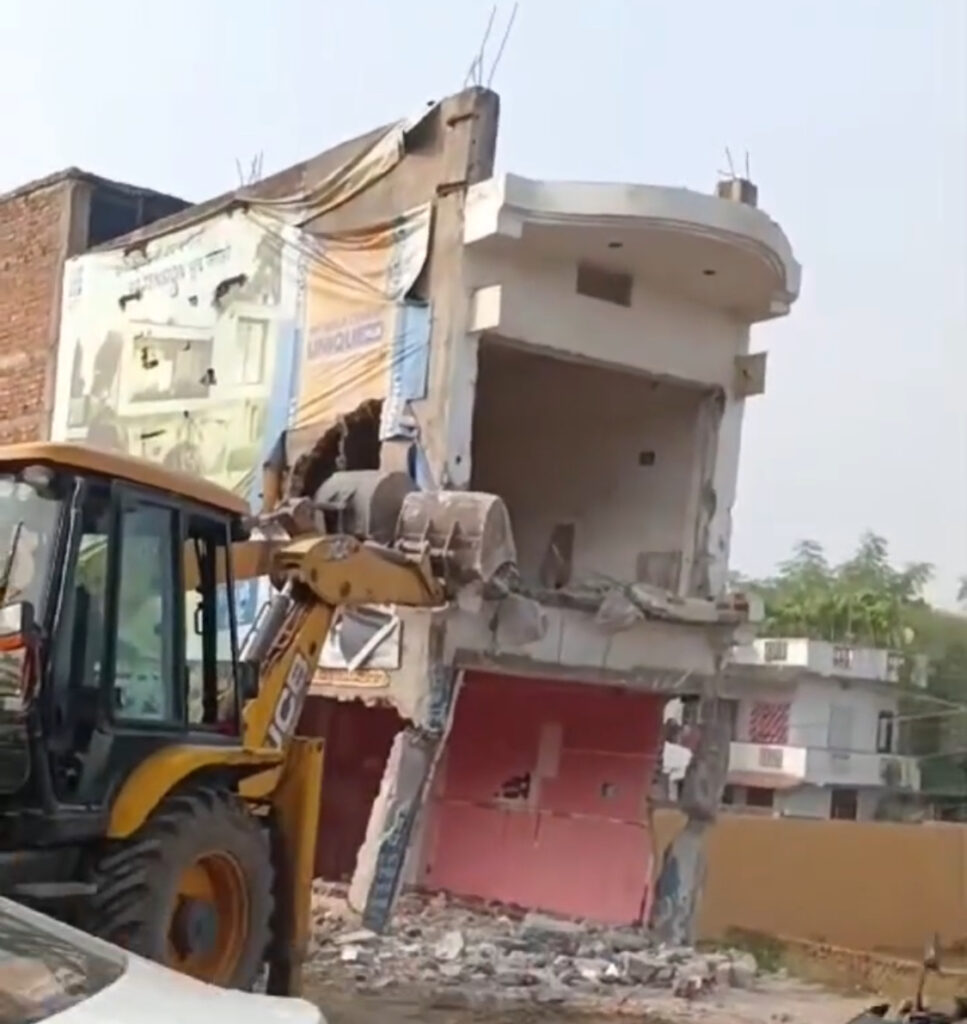 सड़क निर्माण में आड़े आ रहे अवैध क़ब्ज़े पर चला बुलडोज़र