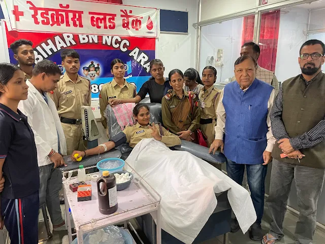 आरा। रेड क्रॉस सोसाइटी के ब्लड बैंक में शुक्रवार को 5 बिहार एनसीसी बटालियन के पदाधिकारी एवं कैडेट्स ने स्वैक्षिक रक्तदान(Blood Donation camp) किया। सभी कैडेट्स नव युवक – युवतियाँ थे। सभी का मूलभूत स्वास्थ्य जाँच कर, जो योग्य थे उनसे रक्तदान कराया गया।