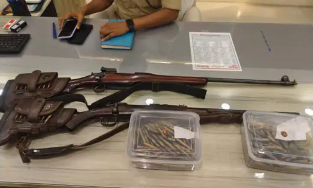 पुलिस को गुप्त सूचना मिली थी कि बालू के धंधे में संलिप्त तत्व दशहत फैलाने के लिए किसी घटना को अंजाम देने की नीयत से अवैध हथियारों का जाखीरा छुपा कर रखे है। इसके बाद सदर एसडीपीओ टू रंजीत सिंह के नेतृत्व में टीम गठित कर महुई बालू घाट के समीप स्थित खेत में छापेमारी की गई तथा योगेन्द्र बिंद के मक्का के खेत में छुपा कर रखा गया दो अवैध रायफल और 315 बोर का 123 कारतूस और 38 मिसफायर कारतूस थैला से बरामद किया गया।