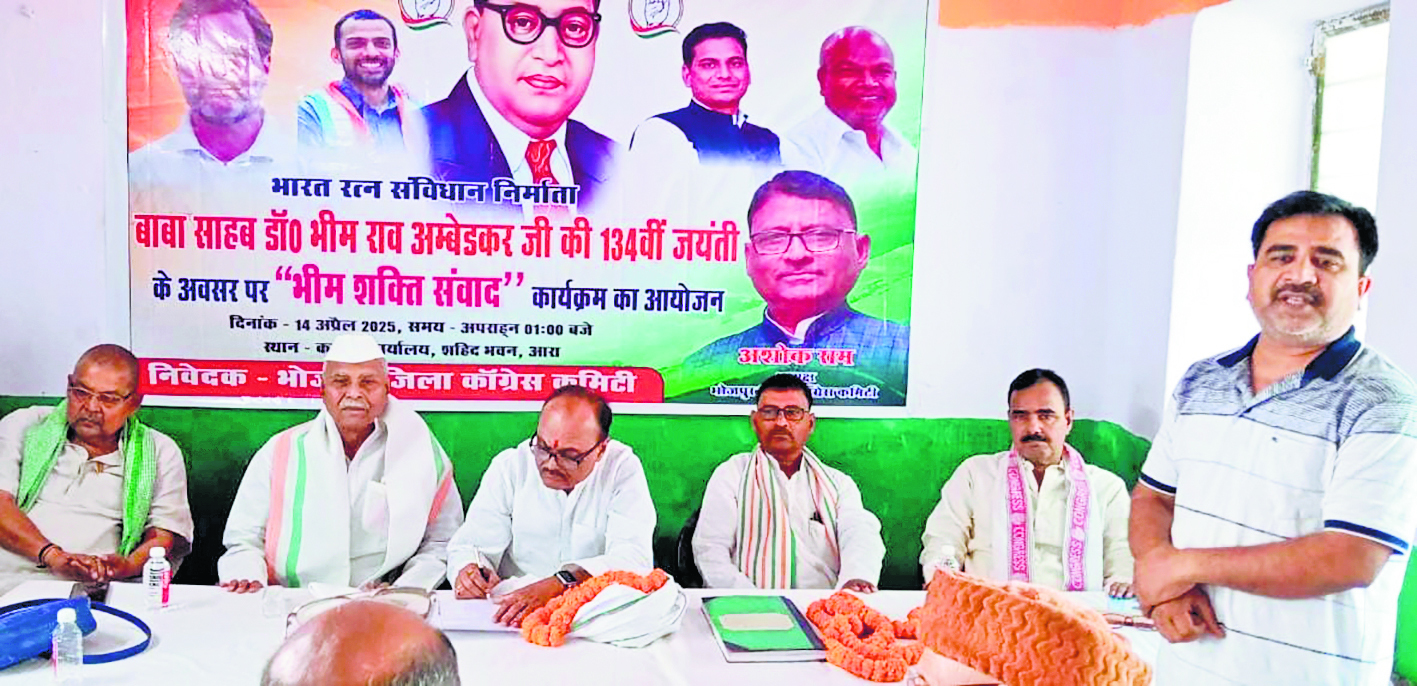 Dr Bhim Rao Ambedkar Jayanti: संविधान निर्माता बाबा साहेब डॉ भीमराव अम्बेदकर की 134वीं जयंती के पावन अवसर पर भोजपुर जिला कांग्रेस कमेटी द्वारा भीम शक्ति संवाद कार्यक्रम का आयोजन धूमधाम किया गया. यह कार्यक्रम पार्टी कार्यालय, शहीद भवन, आरा में जिलाध्यक्ष अशोक राम की अध्यक्षता में संपन्न हुआ. कार्यक्रम का संचालन जिला प्रवक्ता डॉ अमित कुमार द्विवेदी तथा धन्यवाद ज्ञापन वरिष्ठ नेता सत्यप्रकाश राय ने किया. इस अवसर पर बिहार प्रदेश कांग्रेस कमेटी द्वारा हर घर झंडा, हर घर तिरंगा अभियान की सफलता के लिए नियुक्त पर्यवेक्षक प्रमोद कुमार ओझा एवं भीम शक्ति संवाद कार्यक्रम के प्रदेश पर्यवेक्षक राजेश कुमार सिन्हा की गरिमामयी उपस्थिति रही. मौके पर डॉ प्रमोद ओझा ने सभी कार्यकर्ताओं के बीच झंडा वितरण किया और कार्यकर्ताओं से अपील की कि अधिक -से- अधिक घर-घर झंडा घूम-घूम कर लगाने की जिम्मेदारी आगे बढ़कर संभालें और राहुल जी के हाथों को मजबूत करें. कार्यक्रम के दौरान जिलाध्यक्ष अशोक राम ने बाबा साहेब के जीवन एवं उनके योगदान पर विस्तार से प्रकाश डाला. प्रो बलिराज ठाकुर, त्रिवेणी सिंह, डॉ अमित कुमार द्विवेदी, प्रोफेसर अरुण सिंह, सत्यप्रकाश राय, प्रभा सिंह यादव, रेणु देवी, घनश्याम उपाध्याय, रोहित उपाध्याय, संतोष पाण्डेय, मालती पाण्डेय, जितेन्द्र शर्मा, अशोक यादव, डॉ ब्रजेश यादव, डॉ श्रीधर तिवारी, पन्नग त्रिपाठी, राकेश कुमार त्रिपाठी, अब्दुल सलाम कुरैशी, अरविंद कुमार सिंह, गोपाल कृष्ण गोखले, मुकेश चंद्रवंशी, चितरंजन सिंह मुन्ना, उपेंद्र सिंह, अशोक पाण्डेय, राकेश कुमार सिंह, सत्यनारायण लाल, शशि कांत तिवारी, अशोक कुमार सिंह, अजय कुमार पासवान, लुटावन राम चौरसिया, घनश्याम चौधरी, उदय कुमार, प्रकाश सिंह, प्रमोद कुमार, कृष्णा सिंह, सूर्य मोहन प्रसाद, सूर्य प्रकाश, रवींद्र कुमार रवि, सुरेंद्र कुमार शर्मा, रोहित चौधरी, नर्वदेश्वर ओझा, बबलू कुमार, अजय कुमार सिंह, शशि कुमार सिंह आदि शामिल हुए.
