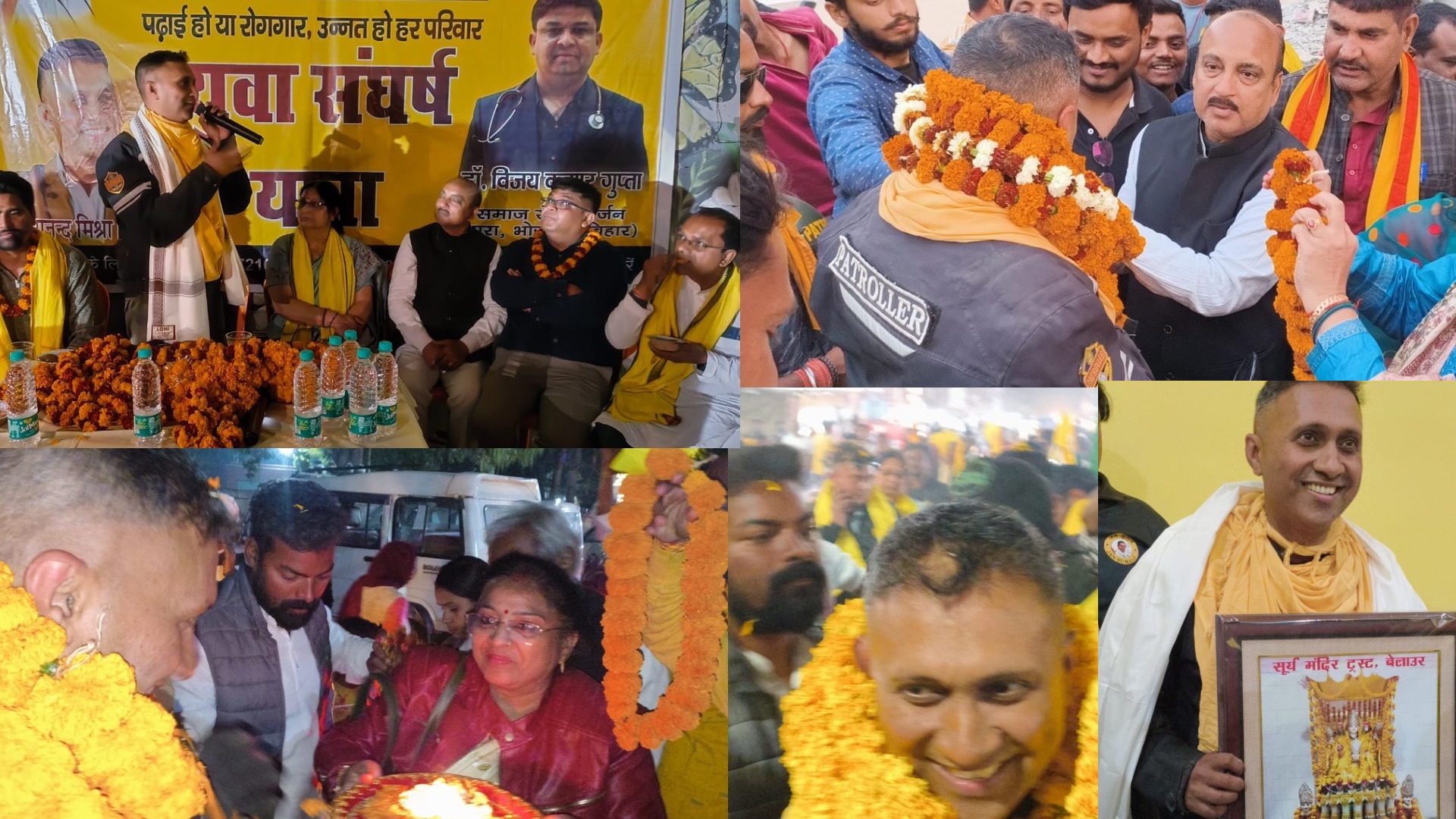 बेलाउर सूर्य मंदिर में हुआ स्वागत, कमिटी ने किया अभिनंदन
