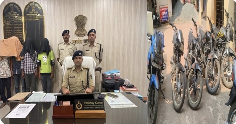 Four arrested with Theft Bikes : भोजपुर के संदेश थाना पुलिस एवं डीआइयू की संयुक्त टीम ने सोमवार को अलग-अलग स्थानों पर छापेमारी कर अंतरजिला बाइक चोर गिरोह का खुलासा किया है। पुलिस ने इस दौरान गिरोह के चार शातिर सदस्यों को भी गिरफ्तार किया। आरोपितों के पास से चोरी की पांच बाइकें बरामद हुई हैं. उक्त बाइकें अरवल तथा भोजपुर जिले के विभिन्न थाना क्षेत्रों से चोरी की गयी हैं।