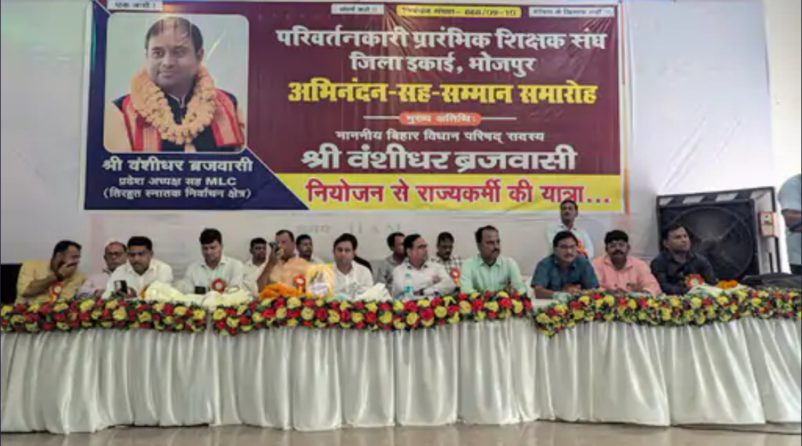 Grand Welcome of MLC: परिवर्तनकारी प्रारंभिक शिक्षक संघ जिला इकाई भोजपुर के बैनर तले रविवार को आरा के हितनारायण क्षत्रिय इंटर कॉलेज सभागार में तिरहुत स्नातक निर्वाचन क्षेत्र के विधान परिषद सदस्य सह प्रदेश अध्यक्ष वंशीधर ब्रजवासी का भव्य अभिनंदन समारोह आयोजित किया गया। कार्यक्रम की अध्यक्षता रंजन कुमार ने तथा संचालन धर्मेंद्र कुमार ने किया।