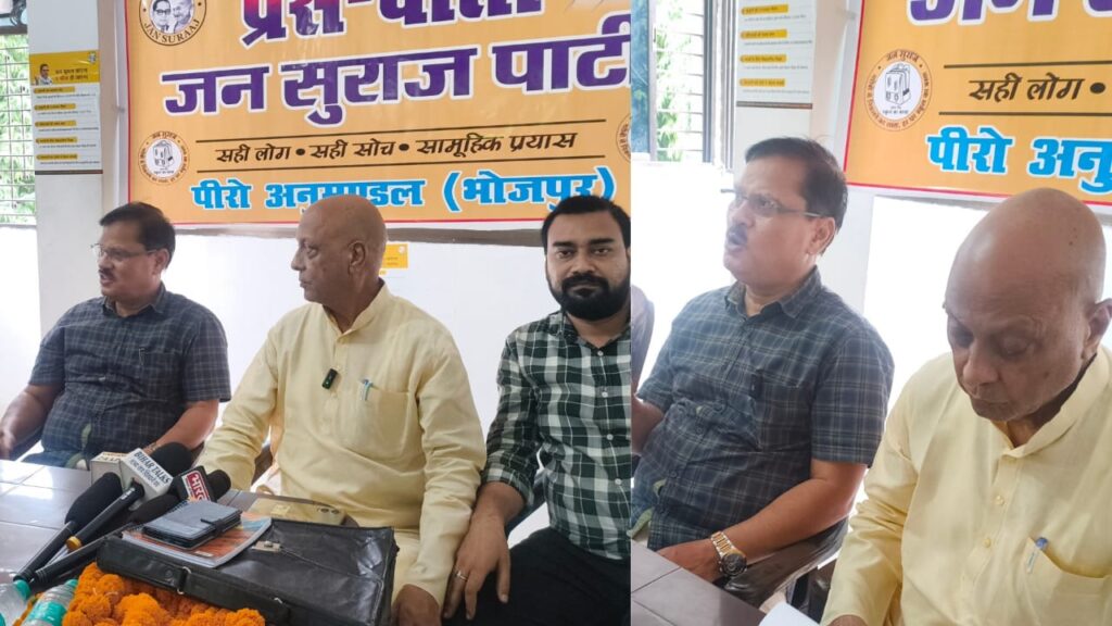 Jansuraj: जनसुराज पार्टी के सूत्रधार प्रशांत किशोर आगामी 13 सितंबर को भोजपुर के अगिआंव विधानसभा अंतर्गत चरपोखरी में आ रहे है। वे चरपोखरी प्रखंड कार्यालय मैदान में बिहार बदलाव सभा को संबोधित करेंगे। इसे लेकर पूरे जिले में तैयारियां जोर- शोर से चल रही हैं। इसी क्रम में गुरुवार को जनसुराज पिरो अनुमंडल कार्यालय में एक प्रेस वार्ता हुई।