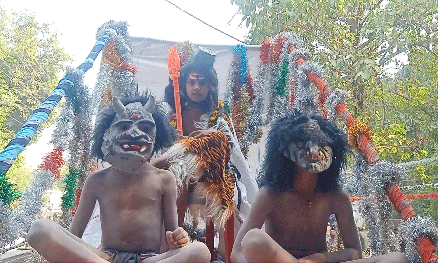 Mahashivratri: महाशिवरात्रि पर आज भगवान शिव की बारात निकलेगी। शिव बारात शोभा यात्रा समिति ने इसकी पूरी तैयारी कर ली है। मंगलवार को गज्जू लाल शिव मंदिर, रामगढ़ीया हनुमान टोला में भोलेनाथ का रुद्राभिषेक हुआ। इसके बाद हल्दी रस्म पूरी की गई। समिति के संरक्षक दंडी बाबा ने रुद्राभिषेक किया। हल्दी रस्म के दौरान श्रद्धालु पीले वस्त्रों में भक्ति गीतों पर झूमते नजर आए। इसके बाद भक्तों के बीच प्रसाद वितरण किया गया। अरुण गुप्ता ने बताया कि शिव बारात आज बुधवार को सुबह 11 बजे निकलेगी। बारात में आकर्षक झांकियां और बाजे-गाजे के साथ बाबा पालकी पर सवार रहेंगे। महाशिवरात्रि को लेकर मंदिर को भव्य रूप से सजाया गया है।