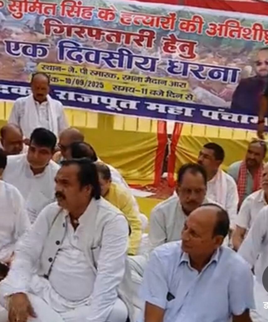 Protest of Rajpoot Mahapanchayat: विगत दिनों मेडिकल रिप्रेजेंटेटिव का काम करने वाले सुमित सिंह की हत्या के मामले में आरोपी की गिरफ्तारी नहीं होने से लोगों में नाराज़गी है। इसे लेकर राजपूत महापंचायत संघ ने जिला प्रशासन के खिलाफ रमना मैदान के पास स्थित जे.पी स्मारक पर एक दिवसीय धरना का दिया।