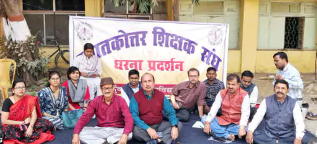 धरनार्थियों में संघ के कोषाध्यक्ष डॉ. रामधनी राम, उपाध्यक्ष डॉ. रमेश कुमार विभिन्न भागों के विभागाध्यक्ष प्रो. कुंदन कुमार सिंह, प्रो दिवाकर पांडे, अवकाश प्राप्त प्रो. अनिल श्रीवास्तव, प्रो. बी.के मिश्रा,प्रो. प्रकाश राय आदि मौजूद थे।